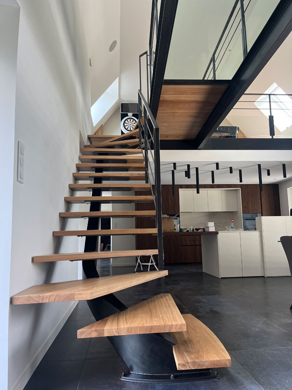 Faisant preuve de créativité et d’adaptabilité, nous nous occupons également des opérations de fabrication et de pose de nos ouvrages. La flexibilité de conception de ce matériau permet de façonner la forme de l’escalier selon vos envies et vos besoins afin de l’adapter avec cohérence (droit, tournant, hélicoïdal ou suspendu).